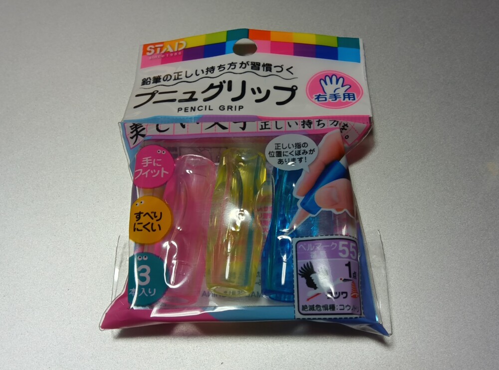 それもそのはず、この商品は学童文具で鉛筆の持ち方の練習用の商品で、子供向けの文具売り場にありました。