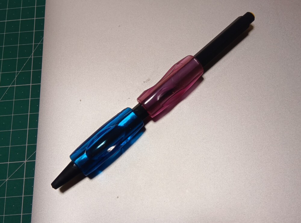 【シャーペンにプニュグリップ(右手用)装着】今のところ麻痺した右手にはこれがベスト