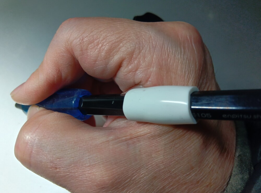 ただ、この右手で使うには鉛筆シャープは若干細すぎます。